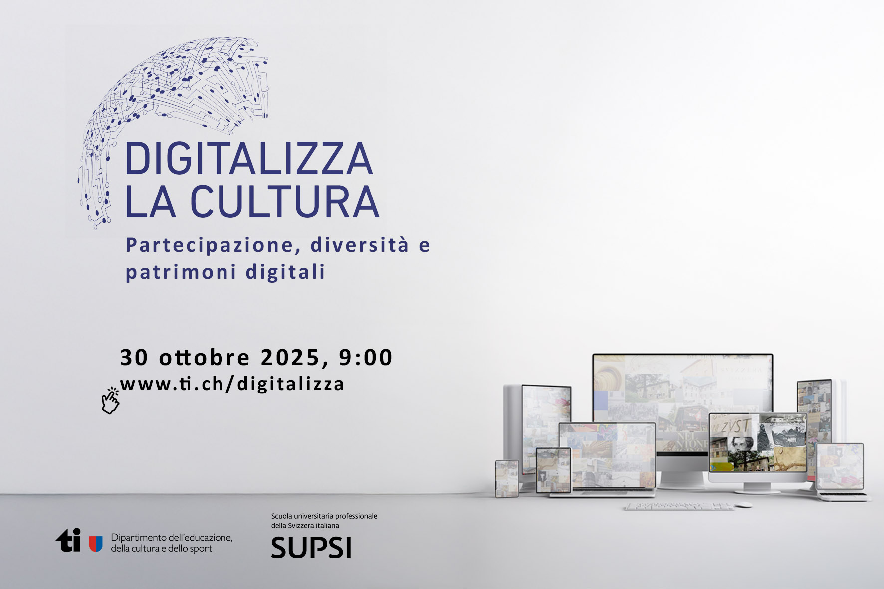 Digitalizza la cultura. Partecipazione, diversità e patrimoni digitali, che si terrà il 30 ottobre 2025 a Manno presso lo Stabile Piazzetta, si concentra sulle trasformazioni del settore culturale a vent'anni dalla firma di due importanti convenzioni del 2005: la Convenzione UNESCO sulla protezione della diversità delle espressioni culturali e la Convenzione di Faro del Consiglio d'Europa, incentrata sul valore del patrimonio culturale per la società.